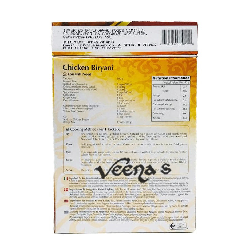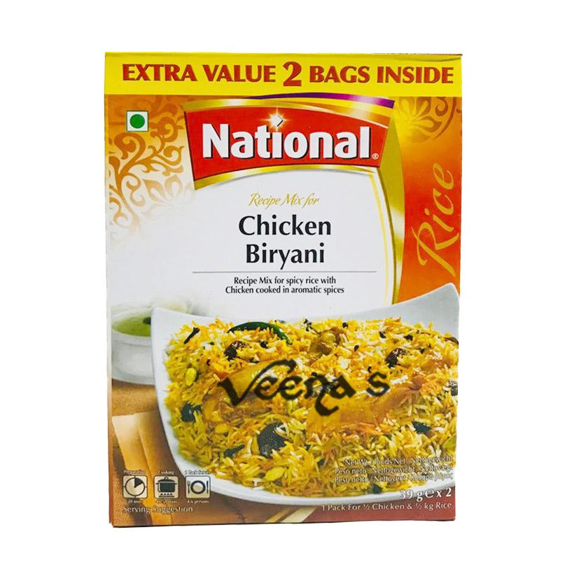 Create the ultimate chicken biryani with National Chicken Biryani Masala, a premium blend of aromatic spices that will bring out the authentic, rich flavors of your biryani. Carefully crafted to enhance the taste of tender chicken, fragrant rice, and a variety of vegetables, this masala ensures a perfect biryani every time. Whether you're cooking for a special occasion or a casual meal, National Chicken Biryani Masala delivers a delicious, restaurant-quality dish in the comfort of your home.