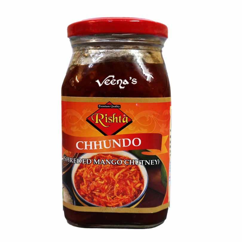 Rishta Chhundo Shered Mango Pickle is a traditional and delightful condiment featuring shredded mangoes marinated in a sweet and tangy blend of spices. This pickle combines the natural tartness of mangoes with a rich, sugary flavor and a hint of aromatic spices, creating a perfect balance of sweet and tangy notes. Ideal for enhancing the taste of rice, chapati, and snacks, Rishta Chhundo Shered Mango Pickle adds a delicious and authentic touch to your meals. Packaged to maintain freshness and quality, this pickle brings a unique, fruity flavor to your culinary creations. Enjoy the distinctive sweetness and tanginess of Rishta Chhundo Shered Mango Pickle with every bite.
