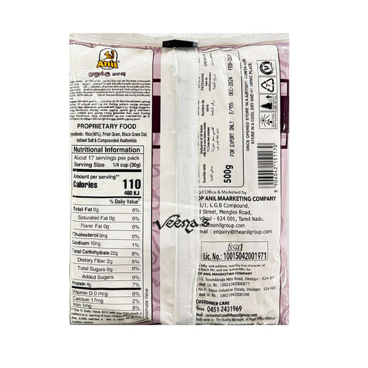 Details Ingredients Allergens Details Anil Murukku Mix makes it easy to prepare traditional South Indian murukku at home. This ready mix is blended with quality rice flour, spices, and seasoning for authentic taste. Ideal for deep-frying crispy, golden snacks during festivals and family gatherings. Delivers consistent texture and flavour with...