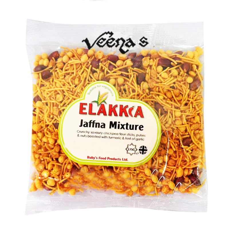Discover the bold and vibrant flavors of Elakkia Jaffna Mixture, a cherished South Indian snack that embodies the essence of Jaffna's culinary heritage. This irresistible blend combines crunchy peanuts, crispy lentil sticks, savory sev, and a harmonious mix of aromatic spices, delivering a symphony of textures and tastes in every bite. Known for its fiery heat and robust flavor profile, Elakkia Jaffna Mixture is a favorite during festive celebrations and casual snacking moments alike. Enjoy it as a spicy accompaniment to tea or as a flavorful topping for salads and yogurt, relishing the authentic flavors that define South Indian cuisine. Embrace the tradition and quality craftsmanship of Elakkia Jaffna Mixture for a snack experience that is both satisfying and unforgettable.
