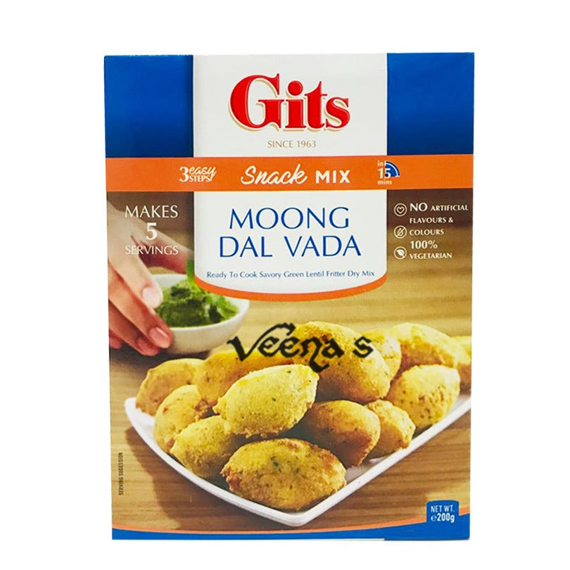 "Enjoy the crispy and flavorful Gits Moong Dal Vada Mix, a convenient way to recreate this beloved Indian snack at home. Made from high-quality moong dal (split green gram), blended with aromatic spices and herbs, Gits Moong Dal Vada Mix allows you to prepare crispy vadas with ease. Simply mix the contents with water, shape into patties, and deep fry until golden brown for a crunchy exterior and soft, savory interior. Perfect for serving as an appetizer, snack, or party treat, Gits Moong Dal Vada Mix brings the authentic taste of Indian street food into your kitchen."