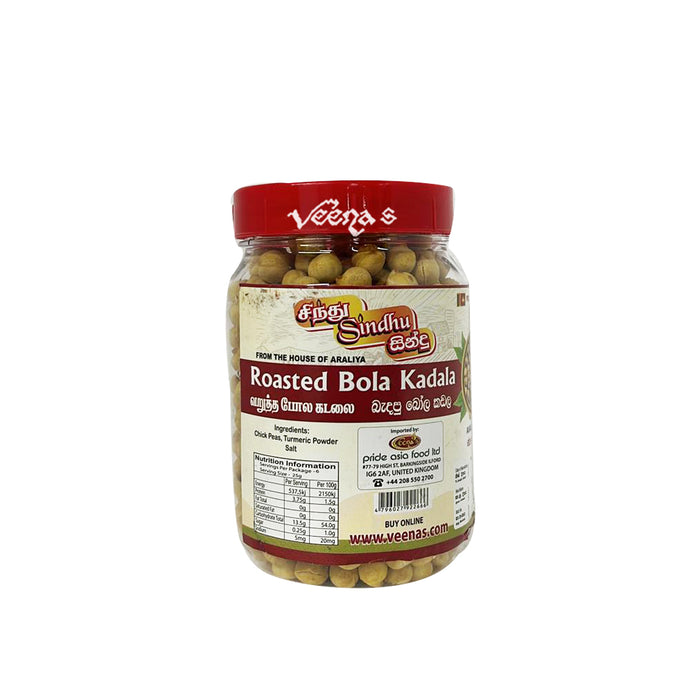 Savor the wholesome taste of Sindhu Roasted Bola Kadala, also known as roasted black chickpeas, a popular South Indian snack known for its crunchy texture and savory flavor. These chickpeas are expertly roasted to perfection, enhancing their natural nuttiness and making them a delightful snack option for all occasions.