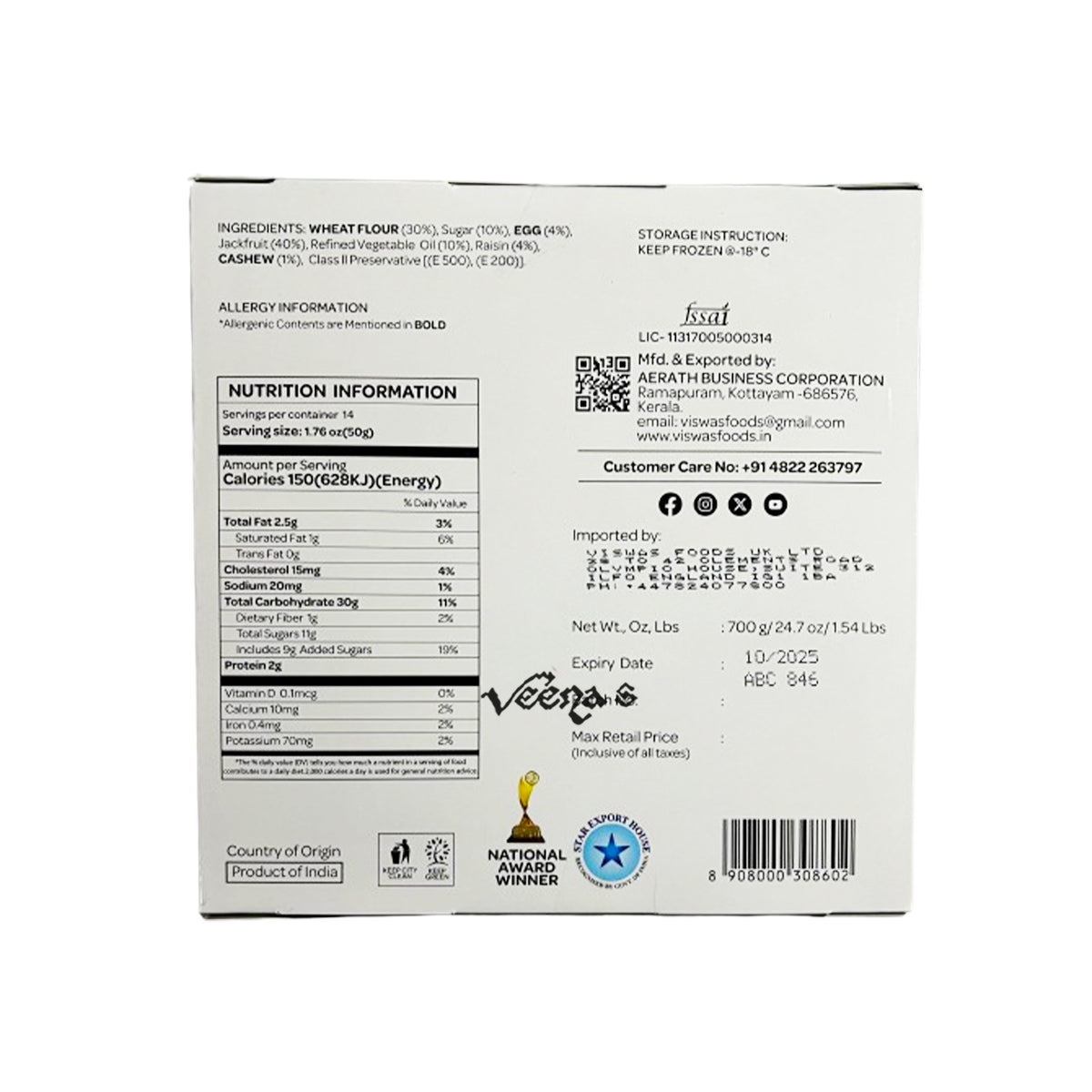 Viswas Jackfruit Cake is a unique and delicious treat that brings the exotic taste of jackfruit to your dessert table. Made with real jackfruit pulp, this cake offers a moist and flavorful experience that is both refreshing and satisfying. Perfect for those who love tropical flavors, this cake is a delightful addition to any occasion. Experience the tropical delight of Viswas Jackfruit Cake and indulge in a dessert that combines the exotic flavor of jackfruit with the comforting texture of a classic cake. Perfect for sharing with friends and family or enjoying on your own, this cake is a celebration of unique flavors and quality craftsmanship.